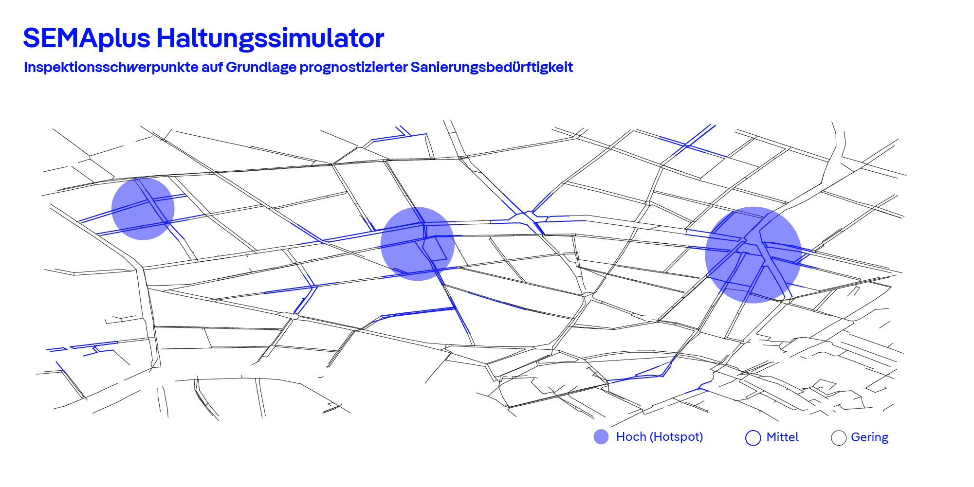 Der SEMAplus Haltungssimulator ermittelt den aktuellen Zustand von Kanalhaltungen und lokalisiert sanierungsbedürftige Hotspots.