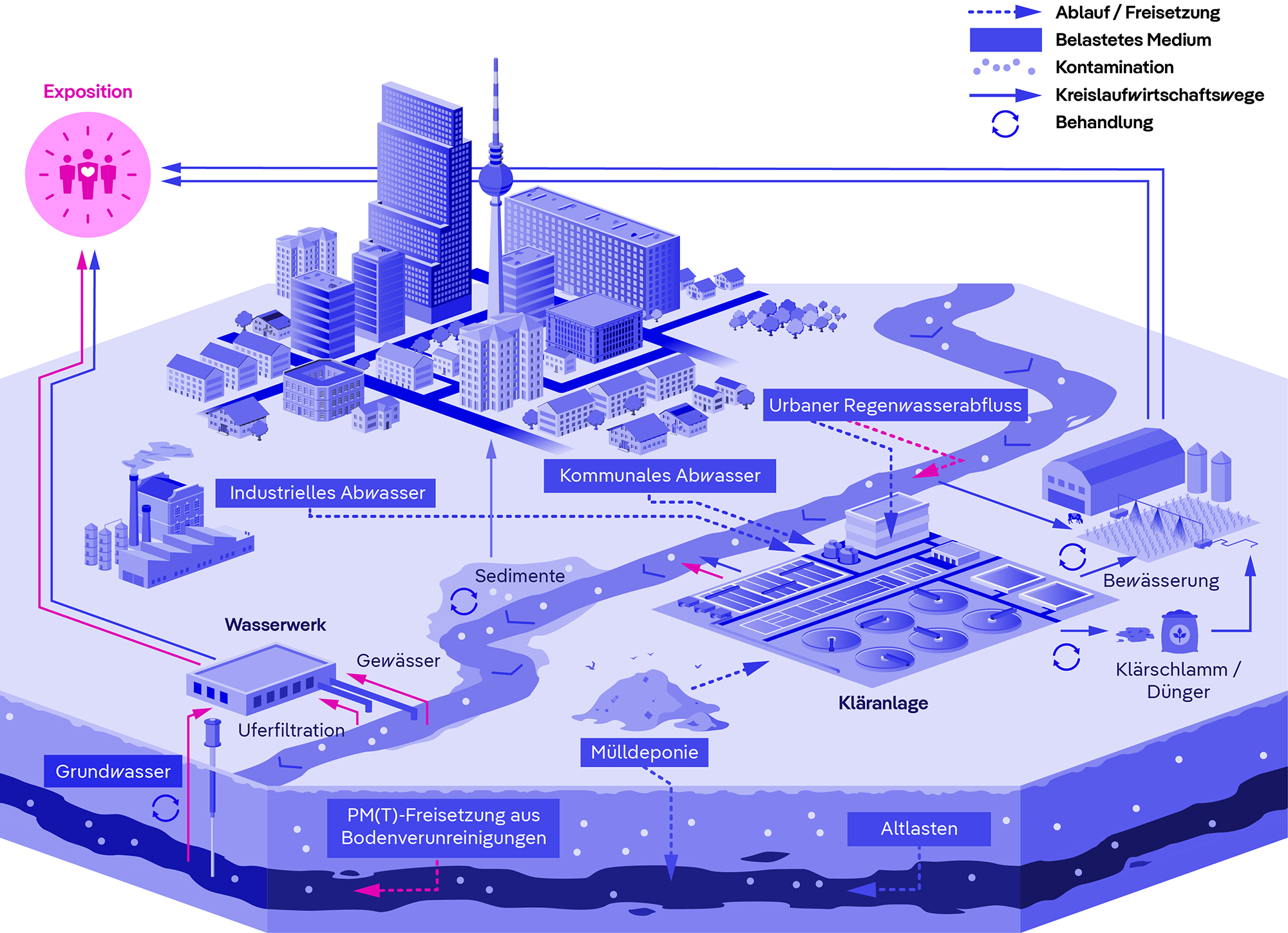 Das vom KWB geleitete Arbeitspaket wird sich auf Lösungen für schadstofffreie Wasserkreisläufe konzentrieren, einschließlich gereinigter Abwässer aus kommunalen und industriellen Kläranlagen, Klärschlamm, Deponiesickerwasser und Trinkwasser. An der Fallstudie in Berlin wird eine eng zusammenarbeitende Expertengruppe teilnehmen, zu der die Berliner Wasserbetriebe, das Umweltbundesamt und die Bundesanstalt für Gewässerkunde gehören. Diese Partnerinstitutionen werden das Vorhandensein von PFAS und iPM(T)s analysieren und ein Vorgehen zur toxikologischen Bewertung von PFAS und anderen iPM(T)s im halbgeschlossenen städtischen Wasserkreislauf Berlins entwickeln. Das KWB wird auch den Verbleib und den Transport von PFAS und iPM(T)s im Oberflächen- und Grundwasser erfassen und modellieren, wobei der Schwerpunkt auf der Lokalisierung von indirekten Einleitungen von Schadstoffen liegen wird. Darüber hinaus wird das KWB Risikobewertungen für die menschliche Gesundheit für Trink- und Grundwasser durchführen, um die Auswirkungen von Behandlungsmaßnahmen zu bewerten. Dazu gehört auch eine verbesserte Berücksichtigung von Unsicherheiten im Risikomanagement.