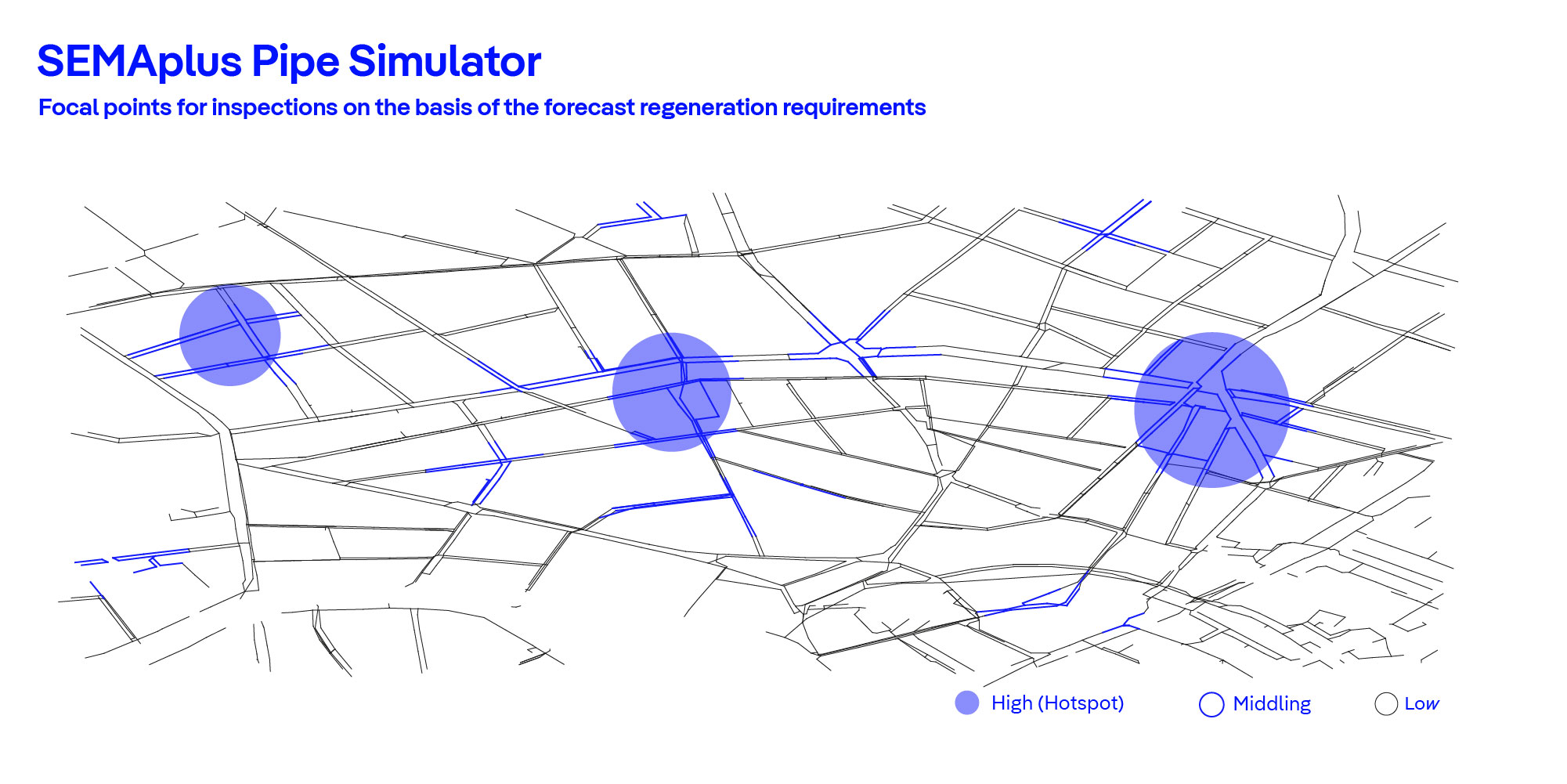 The SEMAplus Pipe Simulator determines the current condition of each sewer pipe and helps localise urgent rehabilitation needs.